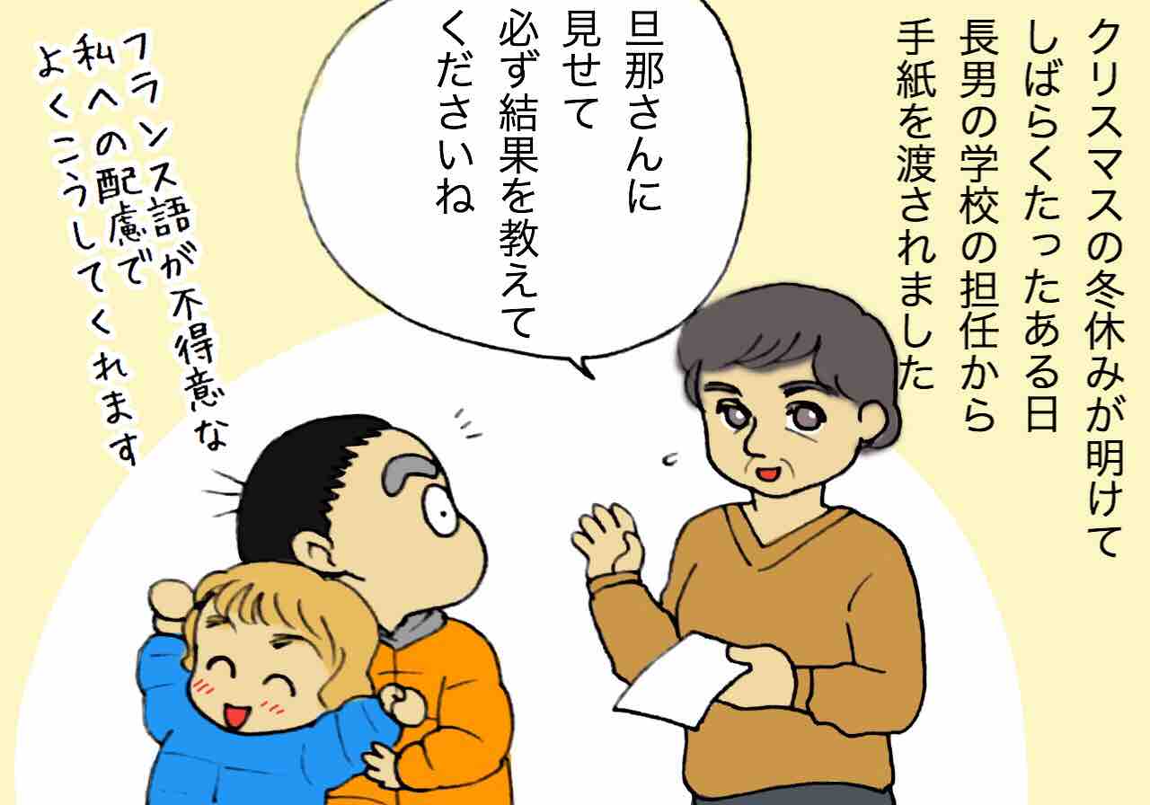 きくこさんは日本人だから気にならなかったと思いますが、ご主人はネイティブなので長男くんのフランス語のレベルがすごく低く見えたんだと思います。冬休みだからとか水ぼうそうだったからと言うのではなく、ずっとそう思っていらしたのかも。
