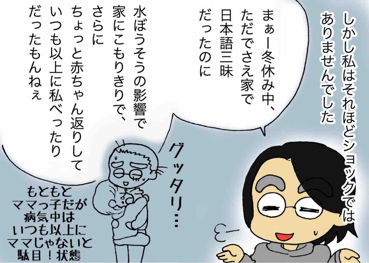 2つの言語で育つのはうちの子には大きな負担だったようです。親子で苦労しました。