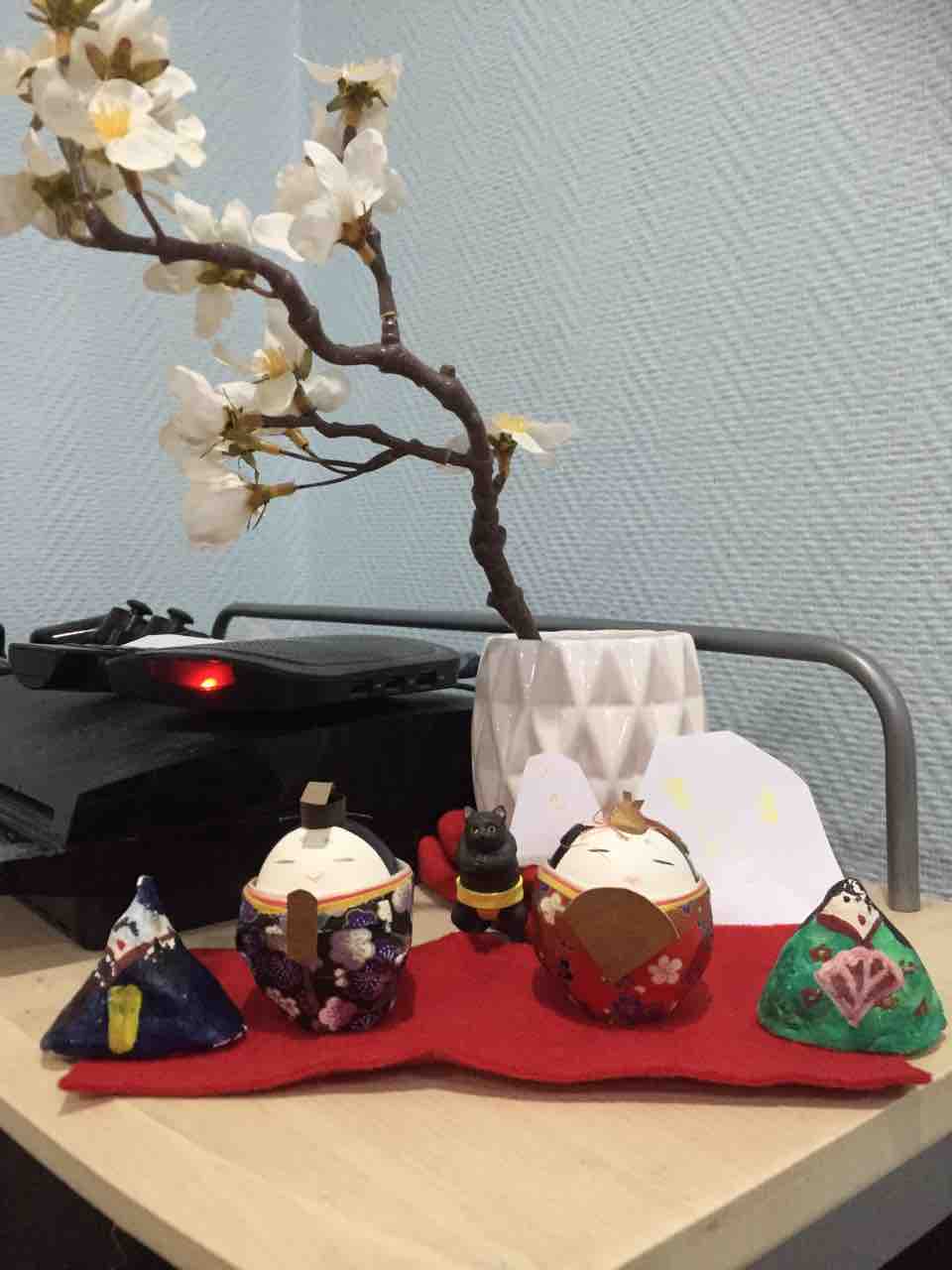 後ろに置いてある紙は長男が作ったひな人形。