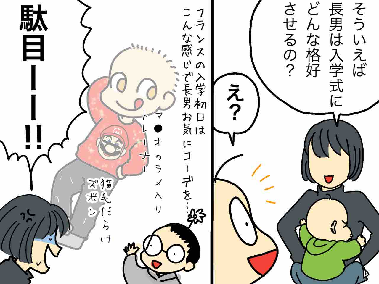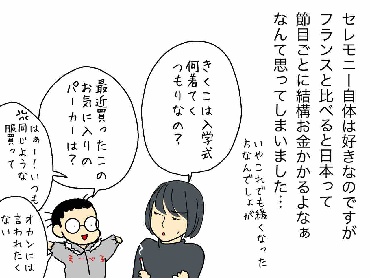 私も反省して入学式にはフランスで冠婚葬祭用に買った黒いワンピースを着て行こうと出してみたらなんかきつい…(T_T)‼