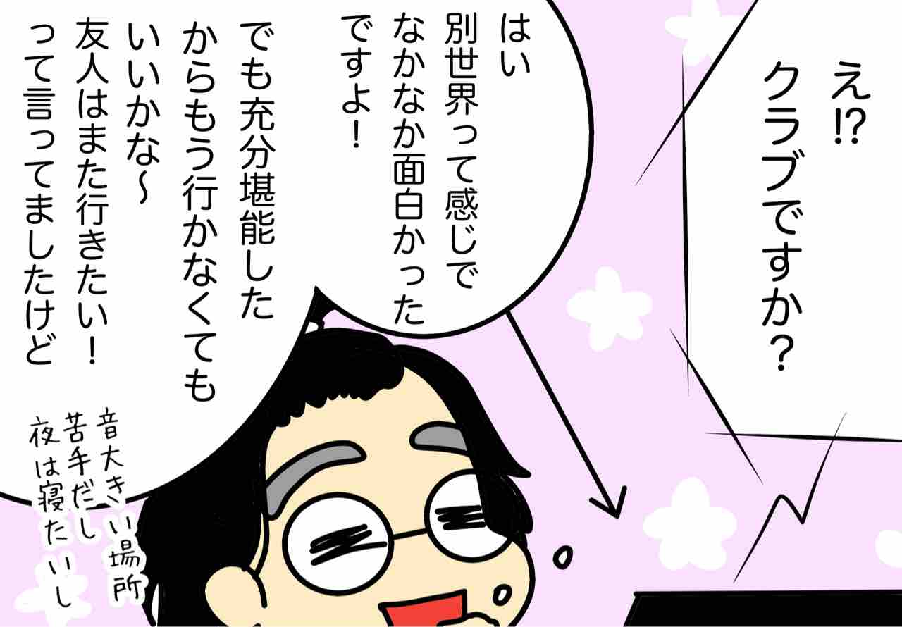 ちなみにこの渋谷のクラブは、友人と遊び慣れてる年上の知人が見守りで着いて来てくれて、母さとちゃんにも玄関で行ってらっしゃいとお見送りしてもらうという超ド級の健全っぷりで(なんかさくらももこさんのちびまる子ちゃんでもディスコに行く話で同じようなのあったなあ~)、