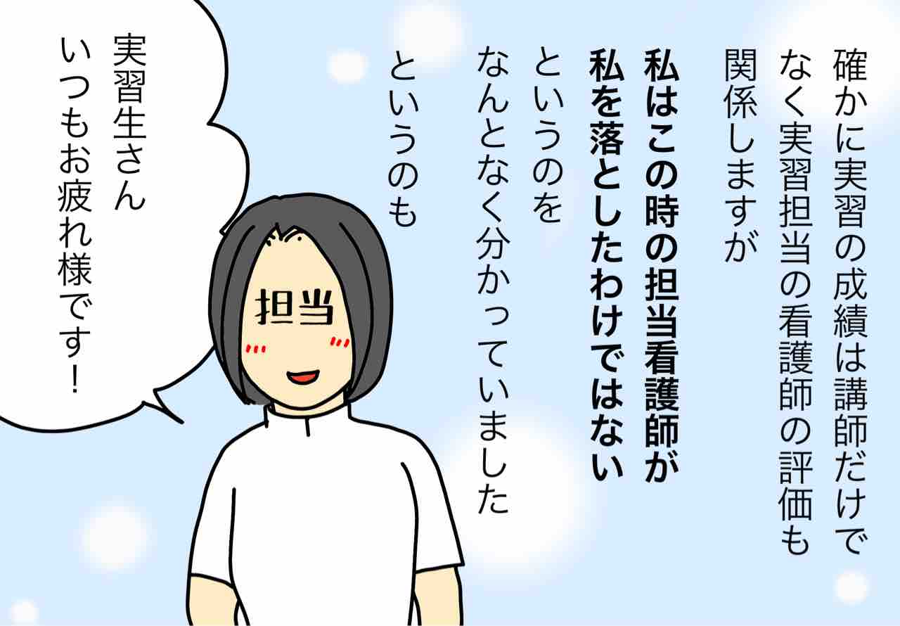 この時の実習担当看護師さんは人間ができたステキな人だったので、本当にこの方が私を駄目だと判断したなら仕方がないと納得するつもりでしたが、講師との話し合いで違うと確信しました。