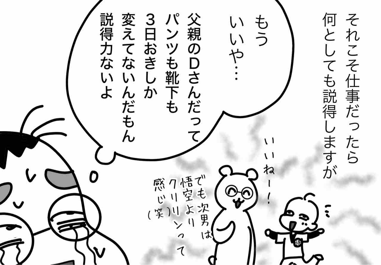 次男君は子供だからまだ仕方ないにしてもいい歳したしかも人の親になったってのに悪い見本になってるって気付けないところがちょっと。