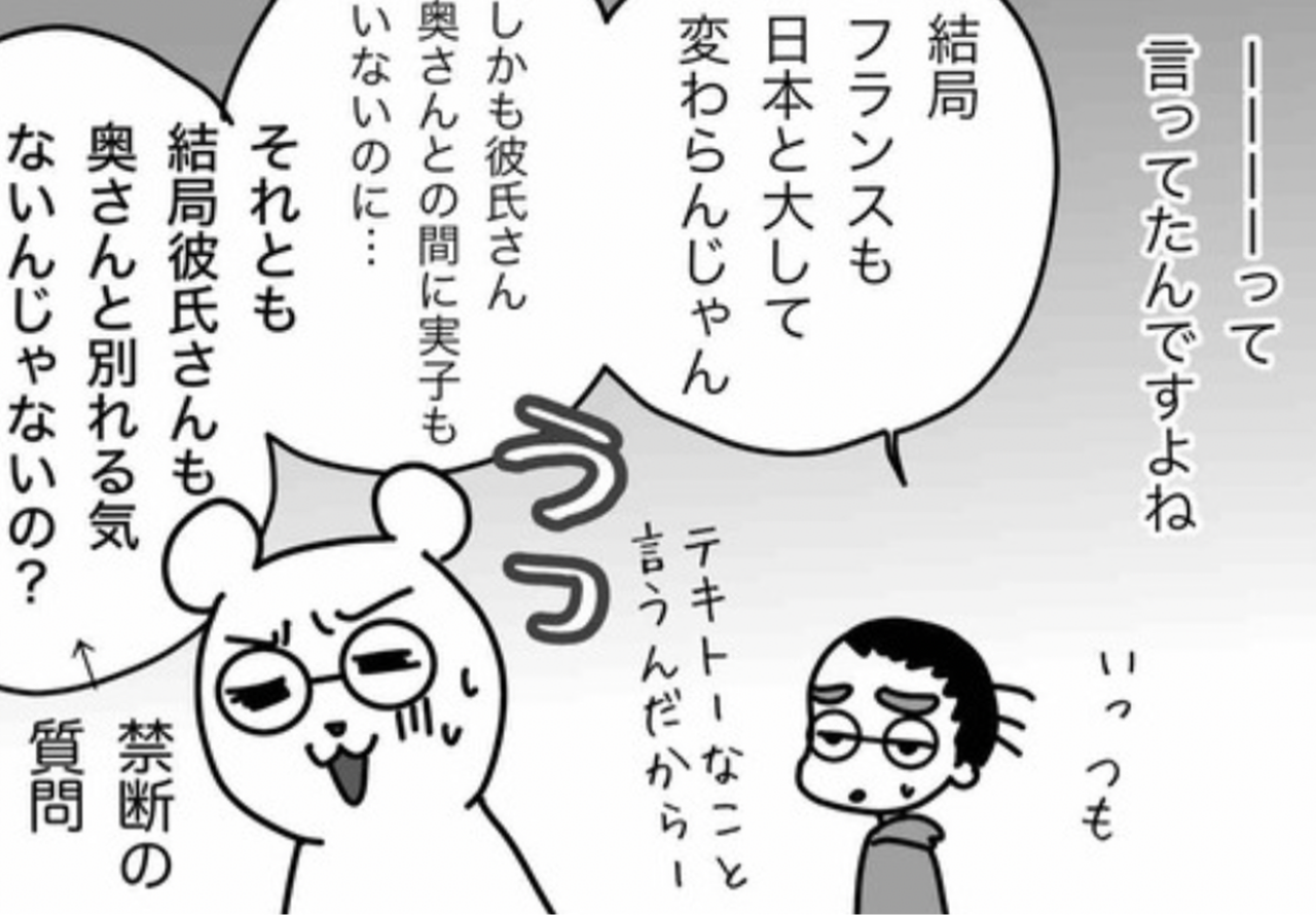 というのも、実際にフランスでも相手が一方的に離婚を言い渡して、それを相手がいろんな理由で(それこそ子どもの問題で離婚を拒んでも)容赦なく離婚している現状を何度も目の当たりにしているので。