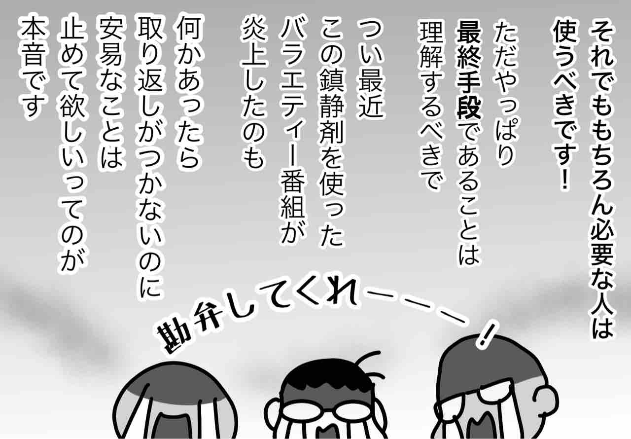 こういうのテレビでやっちゃうとね、面白半分で「自分も経験してみたい!」って人が鎮静剤希望してきたりするんです…。