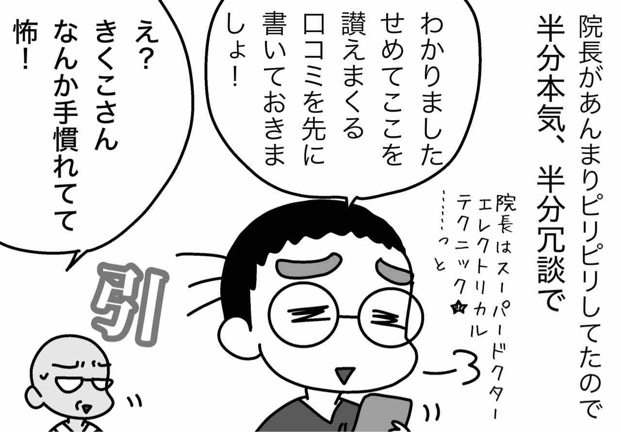 口コミを気にしながらも、身内が書く事には否定的な誠実さ(とプライド)になんだか切なくなってしまいました…院長ぉお…