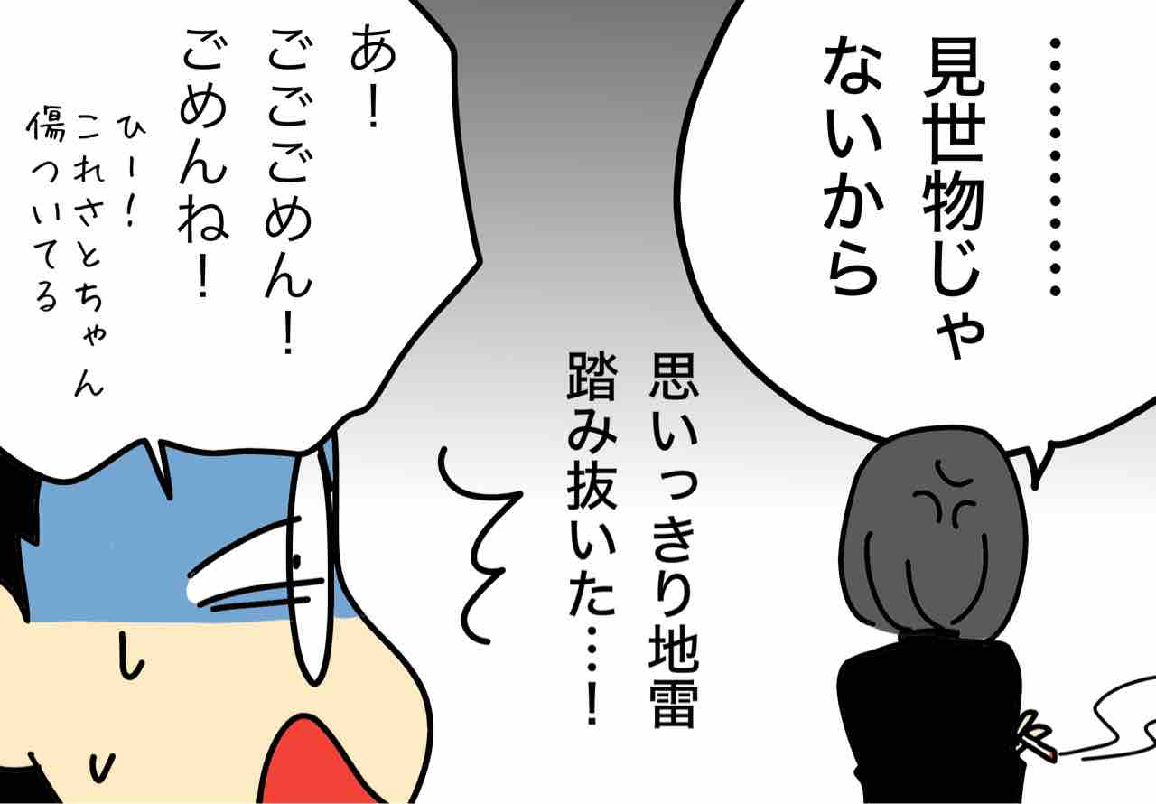 今回はありのままに描くことにこだわっていることやネームの進行上そのままにしますが、今後実際の行動面でも、ブログの表現面でも気を付けますm(__)m