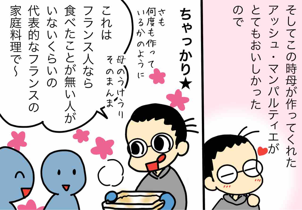 なんとなく続いている「フランス人の友人が遊びに来たよ」シリーズです★最初はこちら→「魔女の宅急便」で肩の力が抜けた→日本に来たフランス人に何作る?(前編)(後編)母はテレビでフランスの伝統料理が特集されているのを見て、この「アッシュ・パルマンティエ」を作 ...