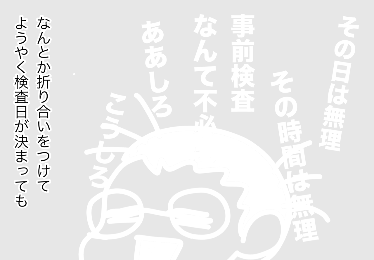 大抵このあと3回くらい予約→ドタキャン繰り返し、その後ケロッと検査受けるまでがお約束。