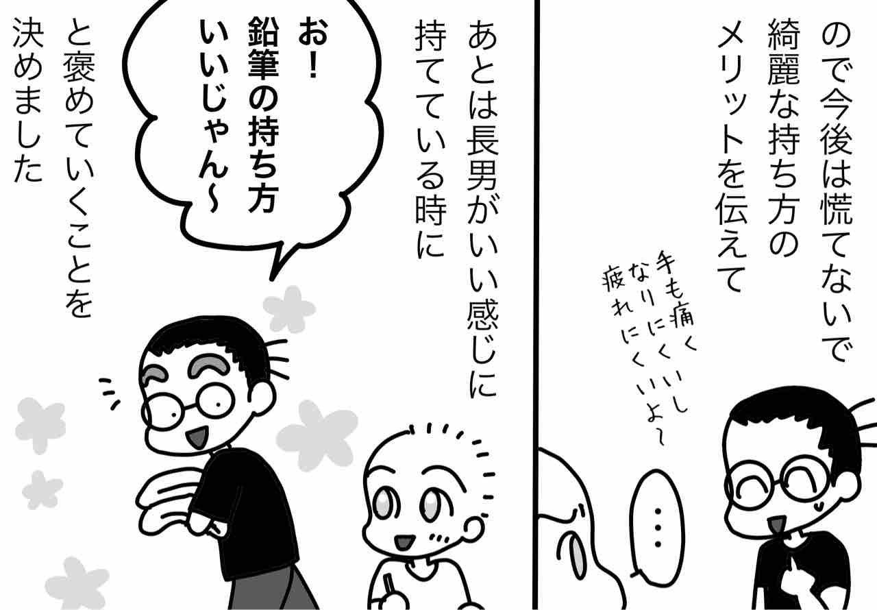 長男の持ち方についてはまだまだ正しくは持ってないのですが、出来てないことを非難するのではなく、出来ている時に褒めたたえる方向で楽しく伝えていこうと思います!
