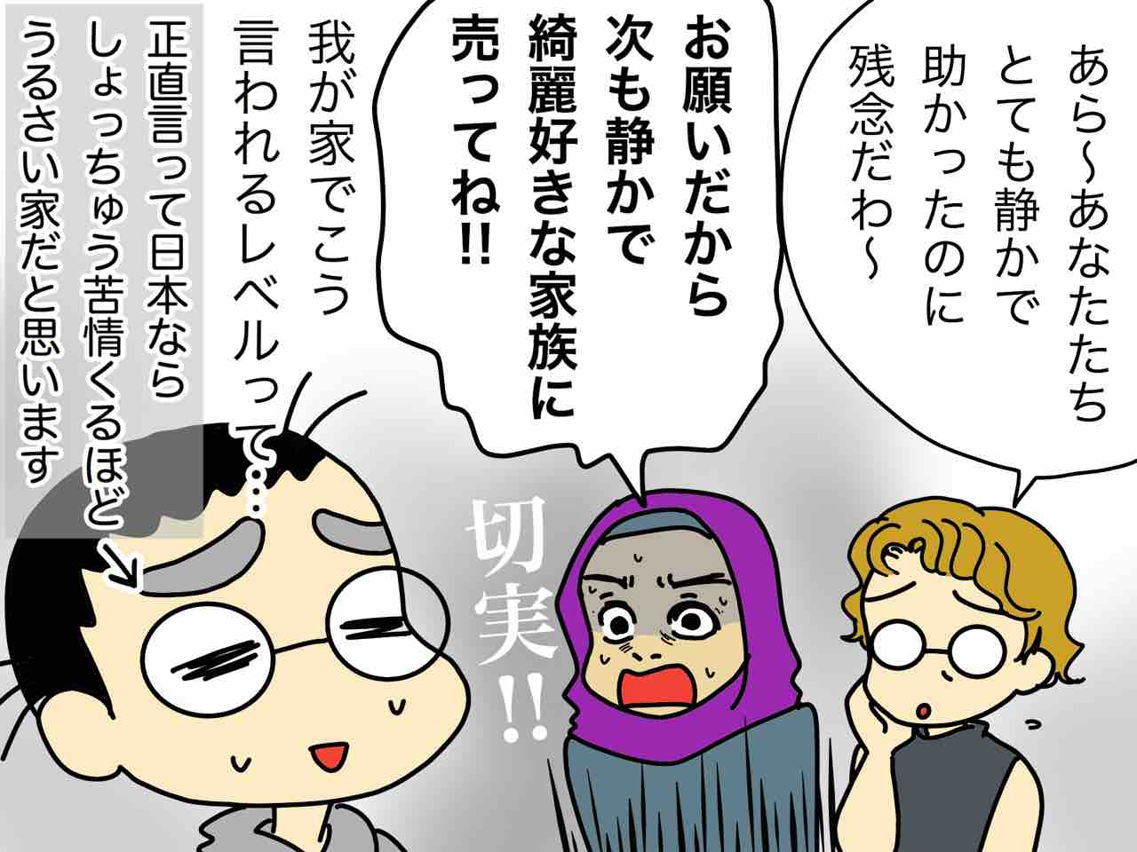 日本に帰ったらこの奥の家族とのトラブルもゴキブリ事件も、きっと懐かしく愛おしい思い出に…